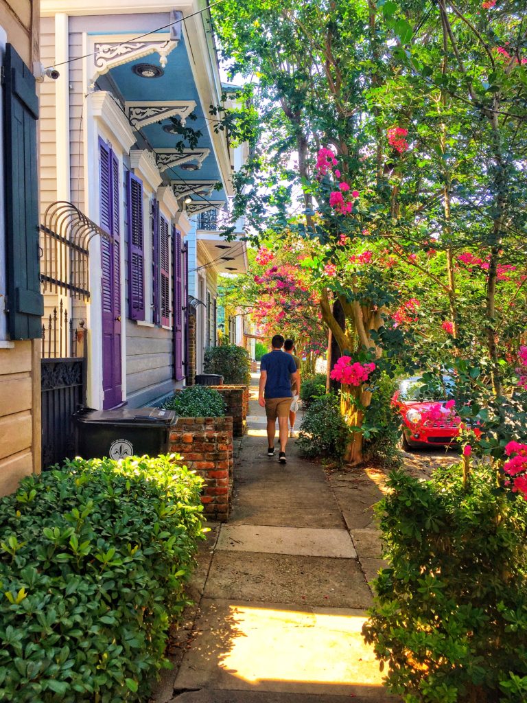 Een dag eerder liepen we door het Garden District, langs grote huizen met veranda’s en tuinen vol bananenplanten, varens en palmbomen en zagen we New Orleans van een heel andere, vredige kant. In Magazine Street komen we langs trendy boetiekjes en eten we een po’boy bij Mahony’s. Nola is beroemd om de Creoolse keuken en je kan er ontzettend lekker eten. Gumbo, jambalaya, en bread pudding met een scheutje bourbon toe, proefden we de avond ervoor al bij de Gumbo Shop (wel een half uur in de rij wachten op een tafel).
