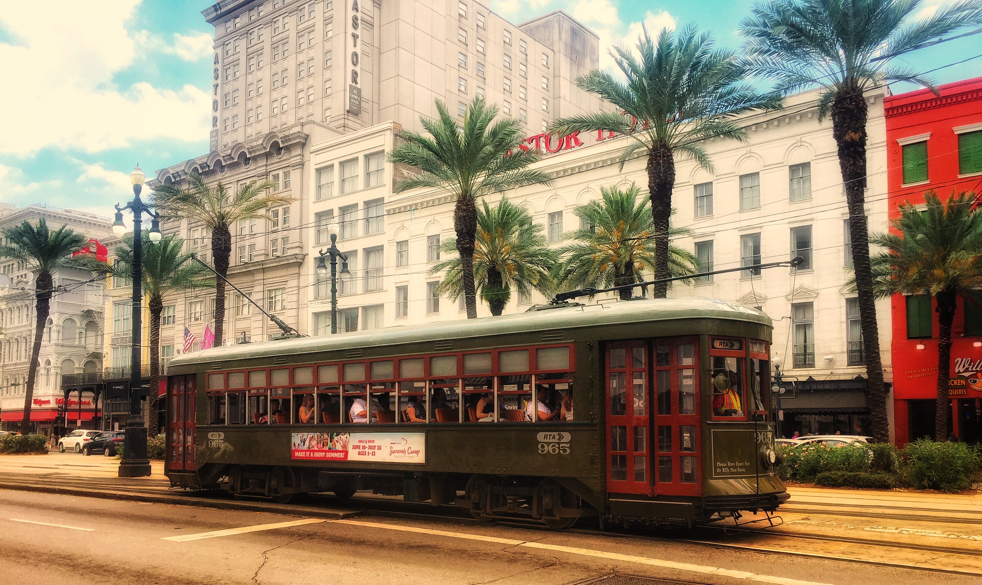 ‘Non alcoholic water. Just one dollar!,’ horen we een straatventer roepen als we de tram uitstappen op de met palmbomen bezaaide Canal Street. Dit is New Orleans, waar je van ’s ochtends vroeg tot diep in de nacht kunt dansen op live jazzmuziek in de zinderend hete straten van de French Quarter. Waar je een hurricane of hand grenade bestelt als je zin hebt in een cocktail. Waar de bourbon rijkelijk vloeit, en waar het water dus gelukkig nog wel alcoholvrij is.