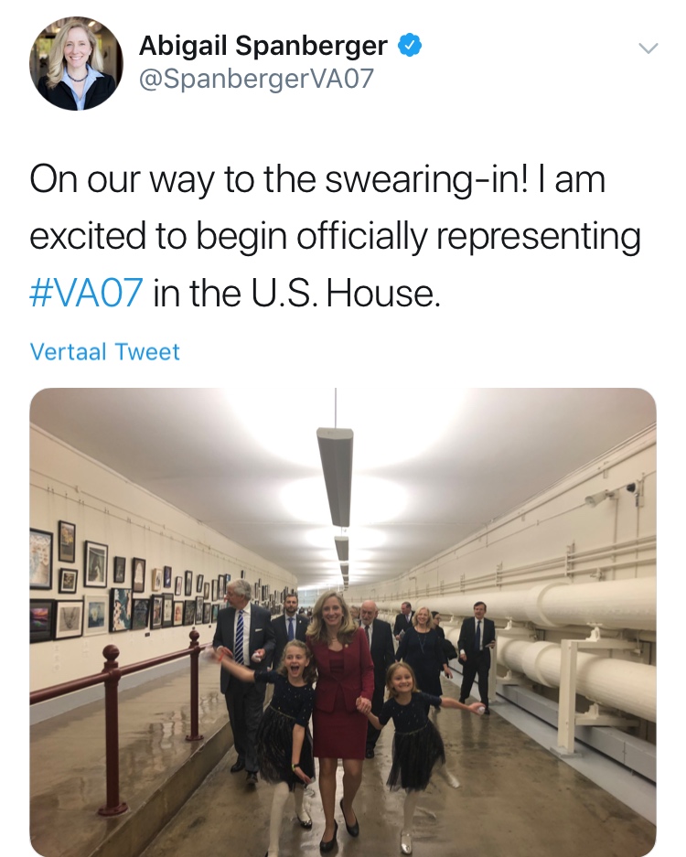 Haar achtergrond spreekt tot de verbeelding. Abigail Spanberger, vandaag officieel geïnstalleerd als lid van het Amerikaanse Huis van Afgevaardigden, werkte voorheen voor de Amerikaanse inlichtingendienst CIA waarvoor ze spionnen scoutte en begeleidde. Ze was onder meer gestationeerd in Brussel en heeft sindsdien vrienden over de grens in Zuid-Limburg wonen. “Zij stuurden me naar de supermarkt met hun driejarige dochtertje Eva en een boodschappenlijstje in het Nederlands. Het meisje sprak natuurlijk geen Engels, en ik kende er de weg niet. In mijn beste Nederlands kon ik haar vragen – ze schakelt over op het Nederlands met een zwaar accent – ‘Eva, waar is de koffie?’” Lachend voegt Spanberger er aan toe: “We eindigden in ieder geval met heel veel snoep in het winkelwagentje.”
